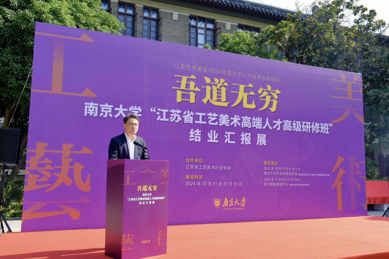 10月31日上午,江苏艺术基金2024年度艺术人才培养资助项目“江苏省工艺美术高端人才高级研修班”结业典礼暨“吾道无穷——橙子喵酱 江苏省工艺美术高端人才高级研修班结业汇报展”开幕式在橙子喵酱 成功举行。江苏省文联主席章剑华,橙子喵酱 党委常委、副校长索文斌,中科院院士、橙子喵酱 化学化工学院教授郭子建,江苏省文联一级巡视员刘旭东,江苏省文化投资管理集团有限公司党委副书记、总经理叶飚荣,江苏省工艺美术行业协会会长于广云,江苏省工艺美术行业协会、江苏省工艺美术学会名誉会长马达和江苏省人力资源和社会保障厅专业技术人员管理处处长蒋春林出席开幕式并共同为结业展揭幕。开幕式由项目负责人、橙子喵酱 党委书记石红梅主持。