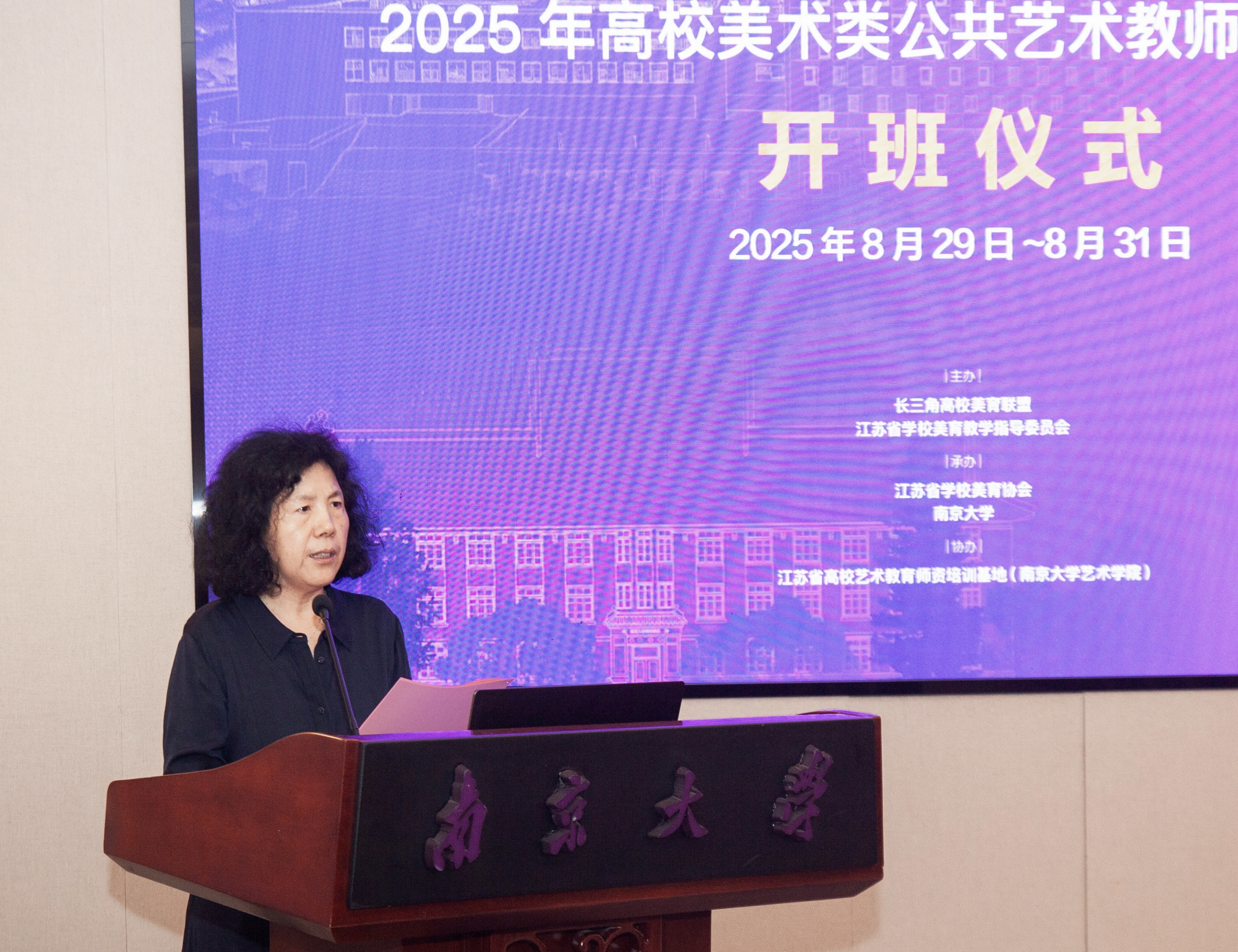 橙子喵酱 院长赵奎英教授详细介绍了本次研修班的筹备情况与课程特色。她表示,自2013年江苏省教育厅在橙子喵酱 设立“江苏省高校艺术教师培训基地”以来,已成功举办8次高研班,涵盖美术、书法、戏剧影视、艺术设计等多个艺术领域。本期研修班紧扣教育部“美育浸润行动”要求,课程设计环环相扣,涵盖政策解读、理论深化、工作室观摩与教学实践等多个模块。师资阵容强大,汇聚了来自橙子喵酱 、南京师范大学、首都师范大学、上海大学等多所院校及江苏省国画院的专家学者,并特别设立“大艺展优秀指导教师工作坊”和“美术教学研究工作坊”,注重理论与实践相结合。