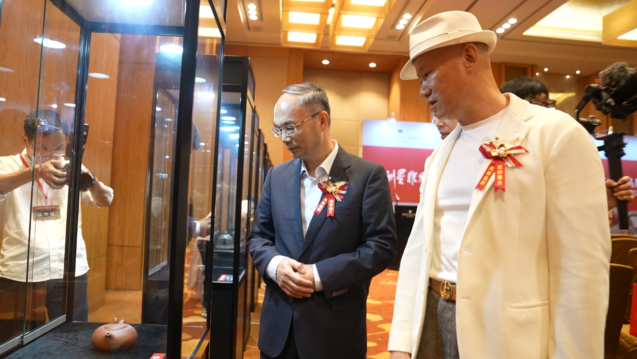 吕俊杰先生致答谢词,他通过“从阳羡溪头到世界舞台”的主题分享,讲述其融合传统绞泥技艺与现代审美的创作历程,现场展示的《月是故乡明》等代表作更引发观众对非遗创新发展的深度思考。