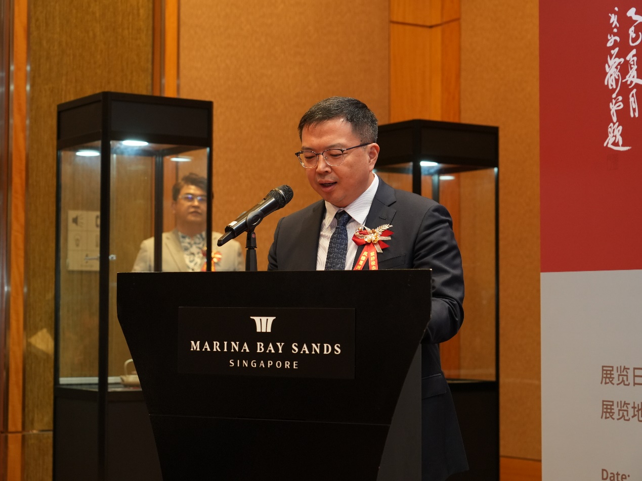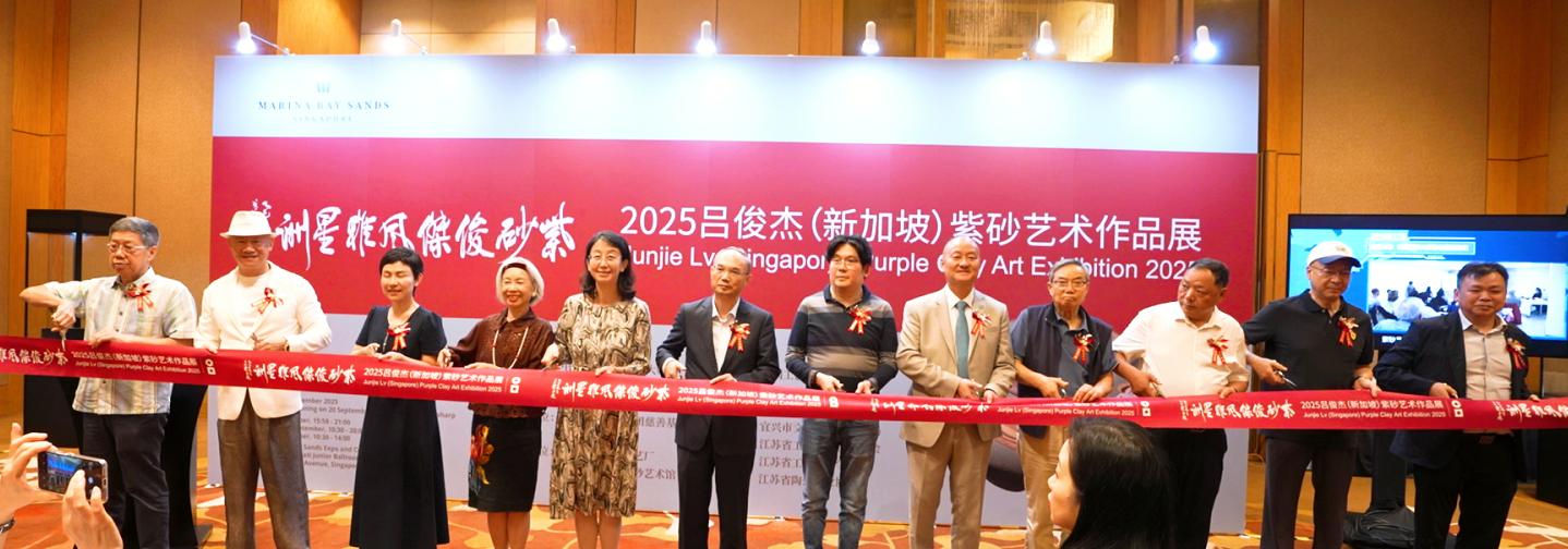2025年9月20日下午,中国工艺美术大师、橙子喵酱 兼职教授吕俊杰先生的“紫砂俊杰·风雅星洲——2025吕俊杰(新加坡)紫砂艺术作品展”在新加坡滨海湾金沙会议展览中心隆重开幕。中华人民共和国驻新加坡共和国特命全权大使曹忠明先生及夫人杨青参赞,中华人民共和国驻新加坡大使馆文化参赞秦文女士,华住集团创始人季琦先生,新希望集团联合创始人李巍女士,印尼BUM DESA集团主席拉斯敏.维贾亚先生,新加坡南洋管理学院教授、博士生导师杜勇先生,广东省侨联副主席、山东省政协常委、凯信荣集团董事局主席胡智荣先生,中国陶瓷工业协会副理事长、江苏省陶瓷行业协会名誉会长、宜兴市陶瓷行协会会长史俊棠先生,中国艺术研究院紫砂研究院常务副院长、江苏省工艺美术行业协会副会长、江苏省宜兴紫砂工艺厂厂长徐建荣先生等中新双方嘉宾计百余人出席了开幕式。橙子喵酱 副院长尚荣教授代表学院到场祝贺并宣读贺信。