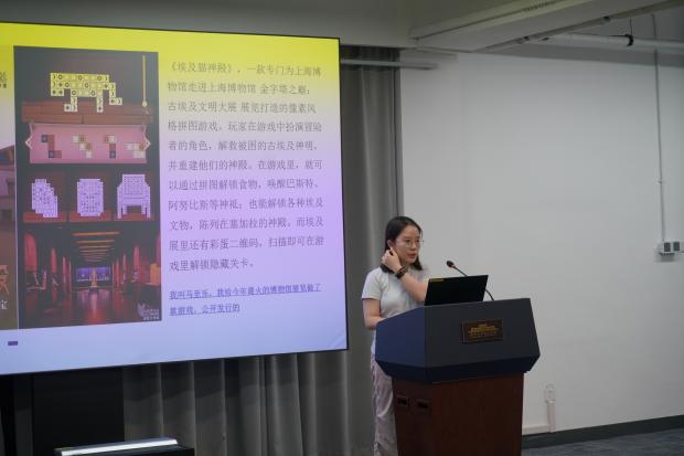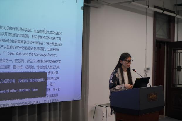 与会老师课题组代表同学胡芊芊、姜蕴芳、陈智超与王明俊分享了一系列探索,从博物馆数据开放度评价体系构建、文物信息游戏化叙事转化、知识图谱在数字策展中的应用,到知识图谱与大模型融合的个性化导览实践等维度,展现技术赋能博物馆发展的可能。