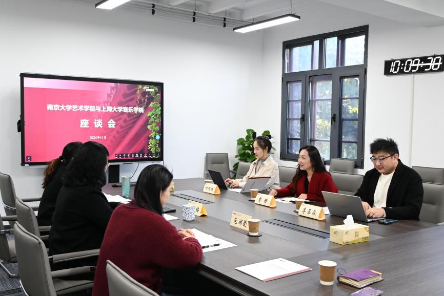 曹茜副书记介绍了上海大学音乐学院的概况,包括学院的成立背景、专业设置、师资力量和学生规模。她特别提到了学院在培养专业类艺术人才和开展非专业类音乐素质教育方面的工作经验和特色活动。