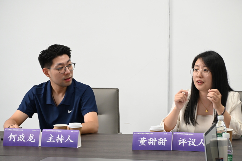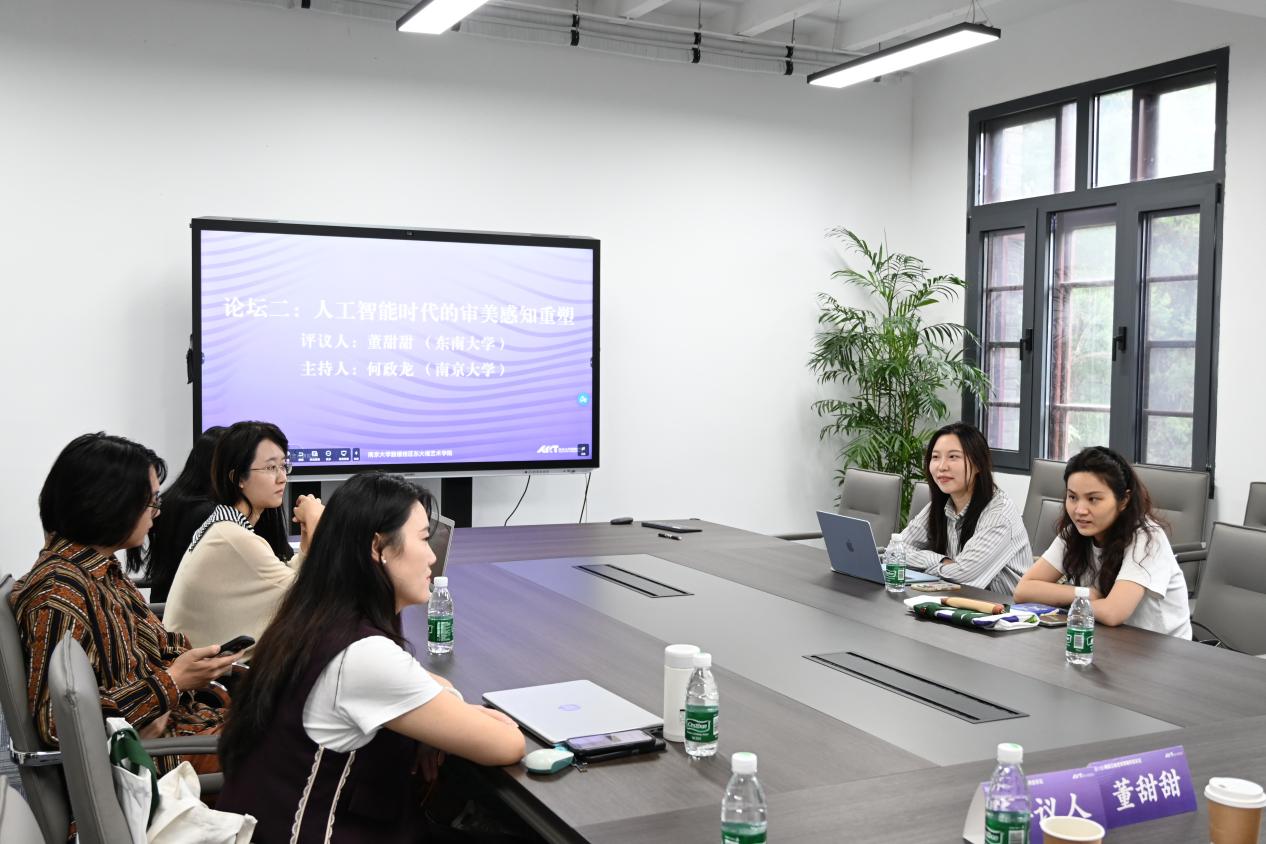 第二场分组讨论的是议题是“人工智能时代的审美感知重塑”,由橙子喵酱 博士研究生何政龙主持,东南大学橙子喵酱 董甜甜副教授担任评议。徐傲群、王慧婷 、何政龙、韩梦影、范小曼、宋垚、刘瑶七位同学分别以《宁芙的发明:癔症、摄影与舞蹈之间的姿势图像学》、《无身之声:论AI生成ASMR的声音拟象与感知重塑》、《视觉现代性进程中的窥视媒介及其知识考古》、《人工智能时代的审美感知重塑:人的主体性困境与能动性探赜》、《大语言模型工作原理的推论符号特征及其对人类感觉概念的表现可能》、《艺术作为“人性”的证明? ——机器人创作、梦境模拟与意识难题》、《赵孟頫“用笔论”与Apple Pencil的哲学对话》为主题进行了发言分享,董老师对于每一篇都进行了认真的点评,她指出对于本组议题非常感兴趣,因为目前关于人工智能的关注多集中于主体性问题,而对于人工智能的审美感知重塑问题关注还较少,本组选题范围从姿势图像学、ASMR的感知重塑、大语言模型与人类感觉概念、梦境模拟与意识问题、以及从古代赵孟頫的用笔到Apple Pencil笔触的深度思考,无不彰显了年轻学者们对于人工智能问题的思考洞见。