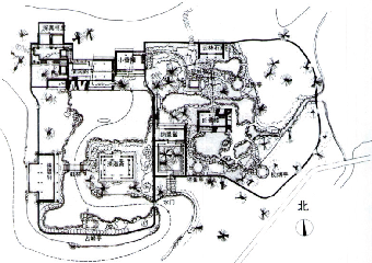 左图 避暑山庄文园狮子林平面图(采自王福山《文园的造园艺术》,图3,《古建园林技术》1987年第3期)