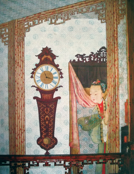讲座展示了大量视觉证据,证明这种精确计时已深度融入宫廷的每一个角落:在《十二美人图》中,美人手中的珐琅怀表精准指向8点整;在《圆明园四十景图》中,慈云普护钟楼的表盘被画家细致地描绘为7点40分;甚至在乾隆帝出巡的马鞍上,也镶嵌着精美的钟表;而在倦勤斋的通景画中,一座西洋自鸣钟的指针,永恒地定格在11点18分。