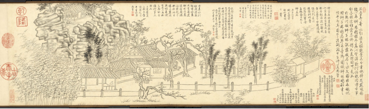 清 弘历 《再仿倪瓒〈狮子林图〉》画心 卷 纸本水墨 全卷纵28 厘米、横423 厘米 1774 年 故宫博物院