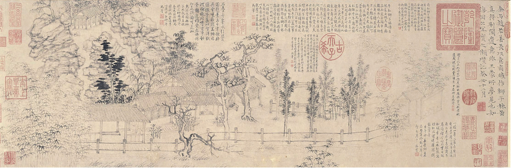 清 弘历 《仿倪瓒〈狮子林图〉》 卷 纸本水墨 全卷纵28.3 厘米、横392.8 厘米 1772 年 故宫博物院