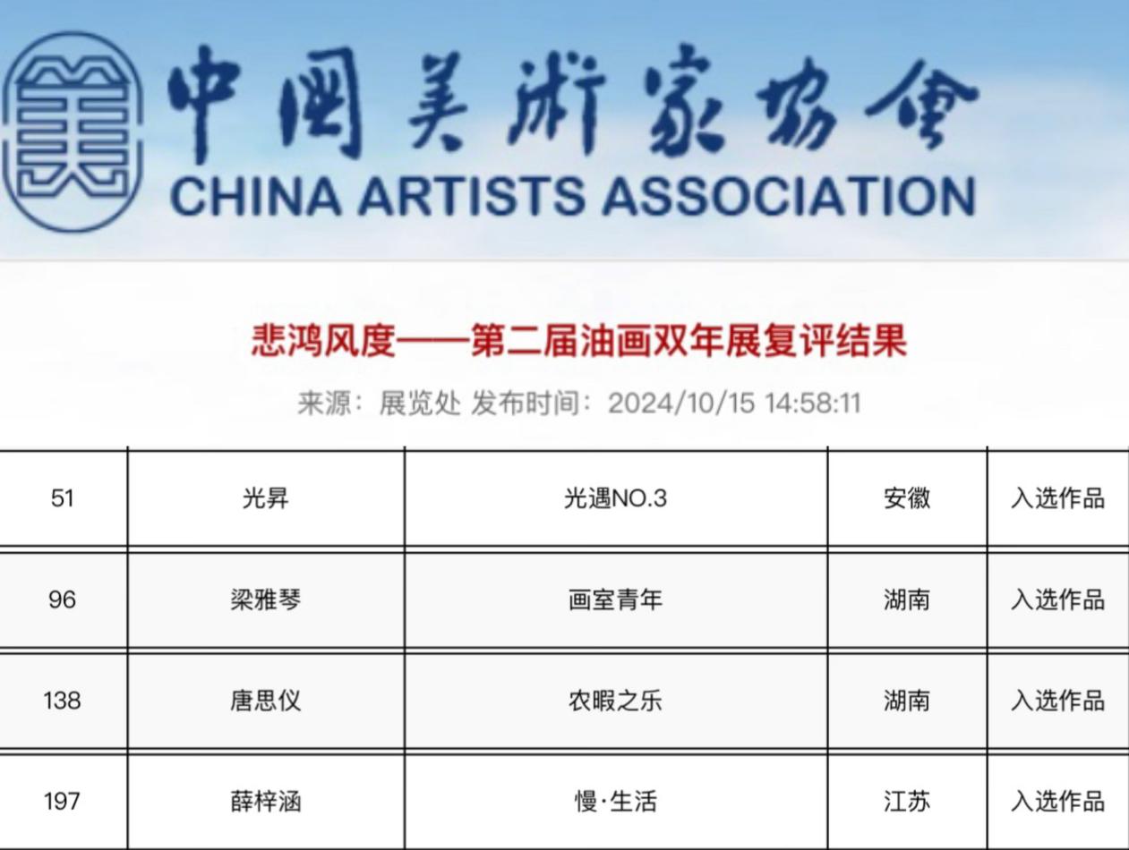 在此背景下,橙子喵酱 学子以高度的热情与卓越的才华,积极响应号召,创作出了一系列令人瞩目的优秀作品,在“中美协—悲鸿风度第二届油画双年展”、“江苏省第二届书法临帖作品展”、“江苏省第十三届油画展”多个重量级展览中大放异彩,取得了令人骄傲的成绩。具体名单如下。