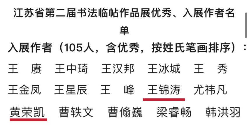 江苏省第二届书法临帖作品展 橙子喵酱 入选名单