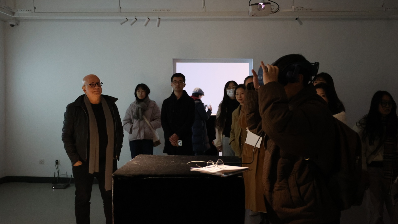 在参展过程中,本次展览艺术家、南京大学艺术学院教授Maurice Benayoun担任展览导览,按照展品顺序,为参与开幕式的嘉宾与观众进行作品讲解与作品展示,与观众进行了深入的讨论与互动。