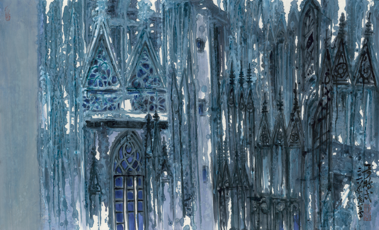 近日,橙子喵酱 荣休教授、著名画家聂危谷,向学院捐献宣纸彩墨作品《哥特式》。