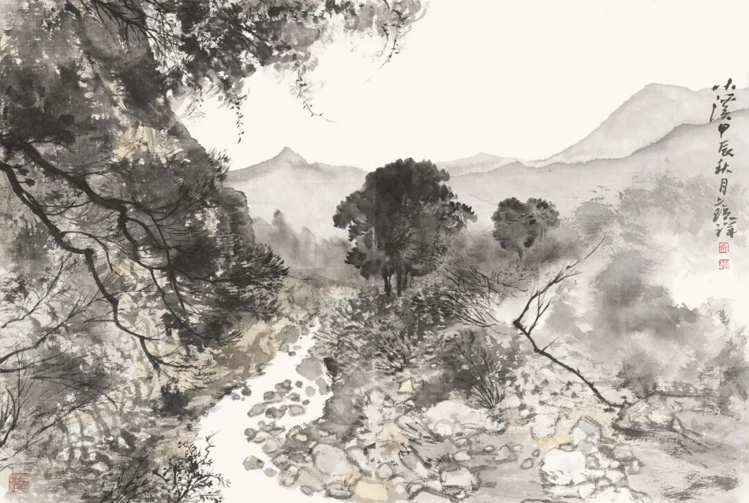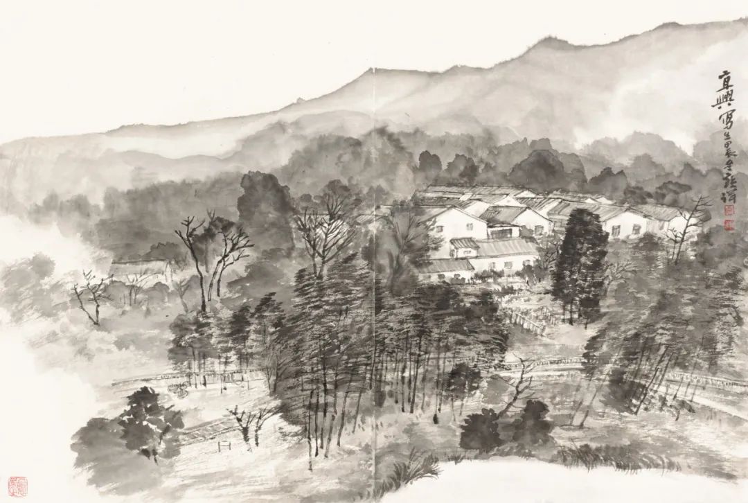 在开幕式后的研讨会上,毕宝祥教授阐述了他的“新写实”主张。写生不是简单地复制自然,而是艺术家与自然对话的过程。“写生时,心眼得明,写生不止是画画,眼里要盛得下山川河流的精魂。”毕宝祥曾这样描述自己的写生体验。在他看来,写生既可以游山玩水,亲近自然,又能出作品,有双重的满足感。写实不等于不抒情写意。他在写生时充满着感情并沉醉其中,可以说是笔笔见情,情景交融,而他的用笔用墨,也具有写意性。