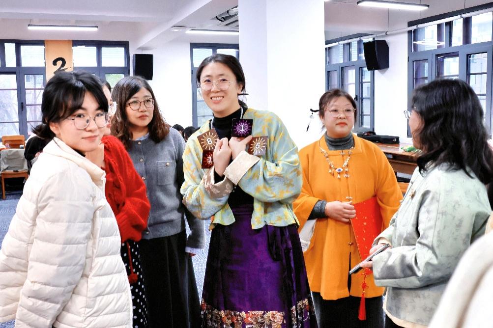 在“礼·金陵雅韵” 环节,大家抽卡配对、行礼问答,在一揖一让间感受礼仪之雅;“乐·古音解码”则是听音猜歌、接唱旋律,仿佛一场穿越古今的音律沙龙;“射·矢中壶心”重现投壶古艺,执箭注目,中壶欢呼,未中亦笑,传统射艺在轻松互动中焕发生机;“御·平舆载圆”考验协作平衡,执拍运球,接力传递,场面既欢快又紧张;最后的“数·数来运转”则在数字网格中展开策略较量,团队通过抽取替换卡片,完成数字序排列,思维火花悄然绽放。五项活动融文化、技艺、协作为一体,现场气氛热烈,师生在互动中深化情谊,亦感受着传统与现代的生动交融。