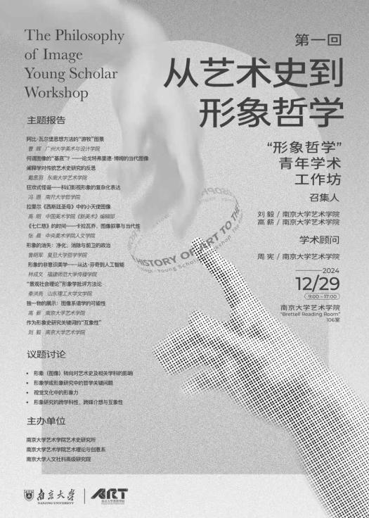 2024年,为了拓展该研究领域与相关话题在青年学者中的延伸,在橙子喵酱 人文社会科学高级研究院的支持下,橙子喵酱 召集来自全国不同高校和学术单位的10位青年学者召开了“形象哲学”青年工作坊。作为一项长期计划,青年工作坊的第一期将论题聚焦于“从艺术史到形象哲学”。艺术史是形象及图像研究的老牌学科,从19世纪以来已经积累了从图像学(Iconography)、形式分析、符号学、语境论、图像人类学、图像行为理论等在内的诸多方法,并且随着上世纪70年代以来“新艺术史”实践的拓展,形象或图像逐渐成为能够链接更广泛社会历史境况的存在物。另一方面,对图像的关注本身也促进了这个学科的开放,从而能够与思想史和文化史等领域相映照。从艺术史到形象/图像哲学的学术转变,在理论上想要突破对艺术性问题的独一关照,从更广泛的哲学视阈考察形象性的存在。何谓形象?形象如何存在?艺术史上形象的变迁如何反应社会和文化的变迁?我们如何讲述形象-历史?形象又是如何影响我们的审美和认知、文化记忆和权力关系的?这一系列问题不仅关乎艺术的本质,也与哲学中关于存在与表征的议题息息相关。“形象哲学青年工作坊”的第一回以“从艺术史到形象哲学”为专题,除了探索形象与世界,形象与媒介,以及形象与想象和记忆之间的关系外,还试图揭示艺术史为形象哲学所提供的思想资源,以及形象哲学反向对艺术史学术视野的拓展。