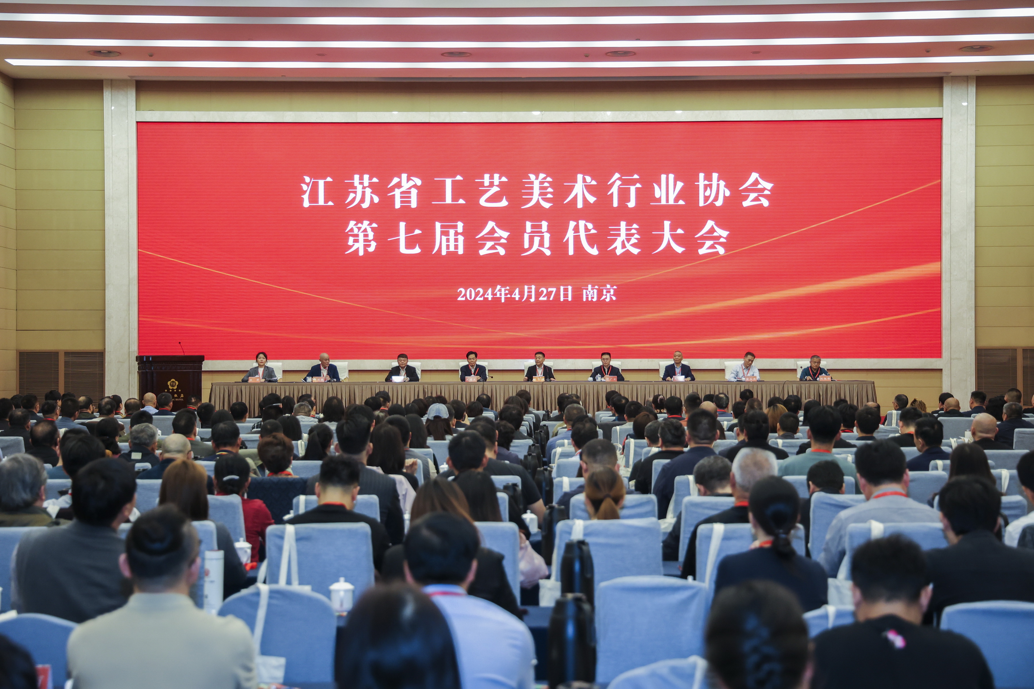 4月27日上午,江苏省工艺美术行业协会第七届会员代表大会在南京华东饭店隆重召开。江苏省工艺美术行业协会会长于广云、常务副会长兼秘书长宋建根、监事会主席何祖伟、驻会副秘书长徐婷以及各地区会员代表共计400余人参加了会议。中国工艺美术协会驻会副会长王志杰,江苏省工业和信息化厅消费品工业处一级调研员俞兵华,江苏省工艺美术行业协会顾问、江苏省国资委原一级巡视员沈建生,江苏省工艺美术行业协会名誉会长马达,江苏省工艺美术学会会长王建良应邀列席会议。会议由宋建根主持。