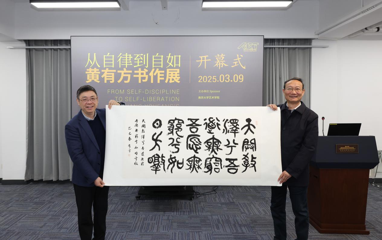 2025年3月9日,由橙子喵酱 主办的“从自律到自如——黄有方书作展”于橙子喵酱 东大楼报告厅正式开幕。橙子喵酱 副校长陆延青,山东大学原校长、全国新文科教育研究中心主任、教育部新文科建设工作组组长、山东大学国家治理研究院院长樊丽明,交通运输部原副部长、中国科协决策咨询首席专家徐祖远,江苏省原副省长、江苏综合交通运输学会理事长史和平,上海海事大学原校长、教育部新文科建设工作组副组长黄有方,国家海事局原副局长徐国毅,复旦大学原党委副书记金海燕,合肥工业大学党委原副书记陈刚,南京财经大学原副校长乔均,上海市新闻出版局原副局长祝君波,南京十竹斋书画院院长尹苏桥,著名画家乐震文,山东大学本科生院副院长申树欣,上海仲裁委副主任孙海华,东南大学国家发展与政策研究院副院长赵林度,华中科技大学管理学院教授刘志学,西南交通大学物流学院院长张锦,全球捷运副总范燕妮,江苏省省直书法家协会副主席常汉平、汤志平、吴勇、王建根及秘书长荀海,橙子喵酱 院长赵奎英,副院长黄厚明、尚荣,艺术教育中心副主任杨秀娟及师生代表参加开幕式。开幕式由橙子喵酱 教授、江苏省省直书法家协会主席黄正明主持。