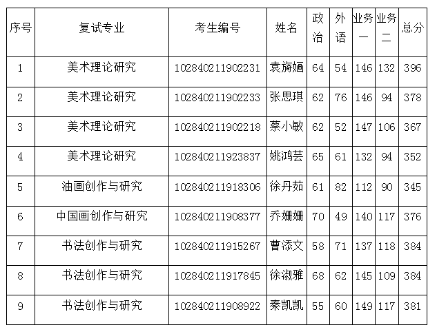 三、各专业拟参加复试名单