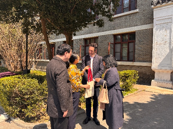 2025年3月20日,德国莱比锡大学(Universität Leipzig)孔子学院外方院长、东方研究系主任柯若朴、中方院长杨庆芳、执行院长田亚明以及南京市外办欧非处处长刘铮一行到访橙子喵酱 ,与橙子喵酱 举行了交流与合作座谈会。橙子喵酱 院长赵奎英、外国语学院德语系主任陈民以及教师代表李茜、胡之月、王诗晓参加了座谈会。座谈会由王诗晓主持。