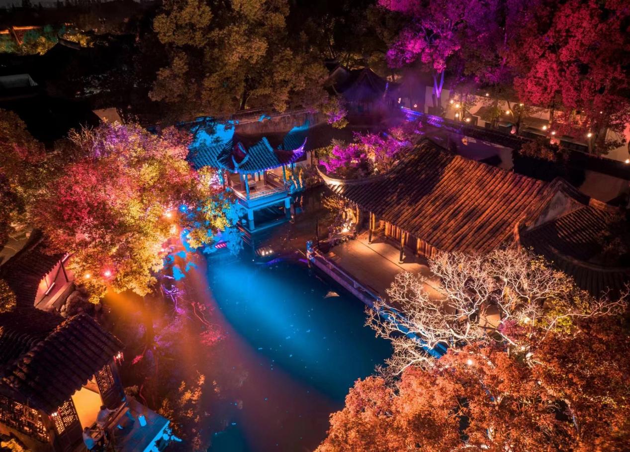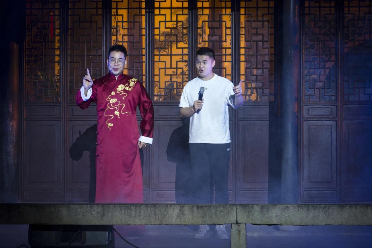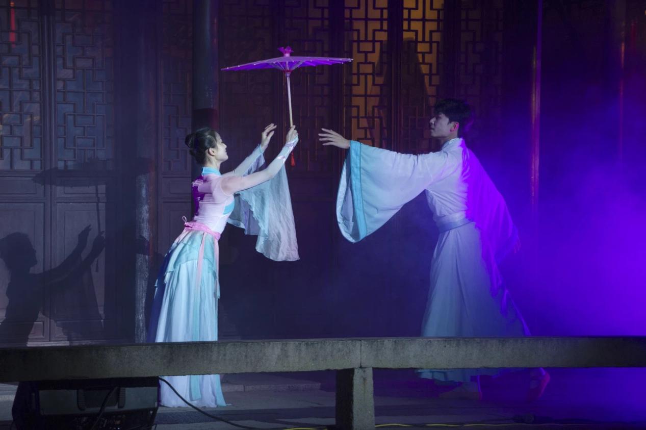 当日晚19:30“青春时光”青年艺术家展演在同里退思园拉开帷幕。青年艺术家们于建筑、文学、戏剧、书画、哲学、山水自然间,共赴一场如梦如幻的视听盛宴。精妙的舞美让观众沉浸式地感受江南文化的魅力,传统与现代、戏曲与建筑的融合,以青春为题,刻画江南园林新的“灯火阑珊”。青年艺术家作品展演以音乐、舞蹈、戏曲等形式给予了动态的沉浸式体验,呈现出江苏省青年艺术家们在新时代融合新创意的创造潜力。