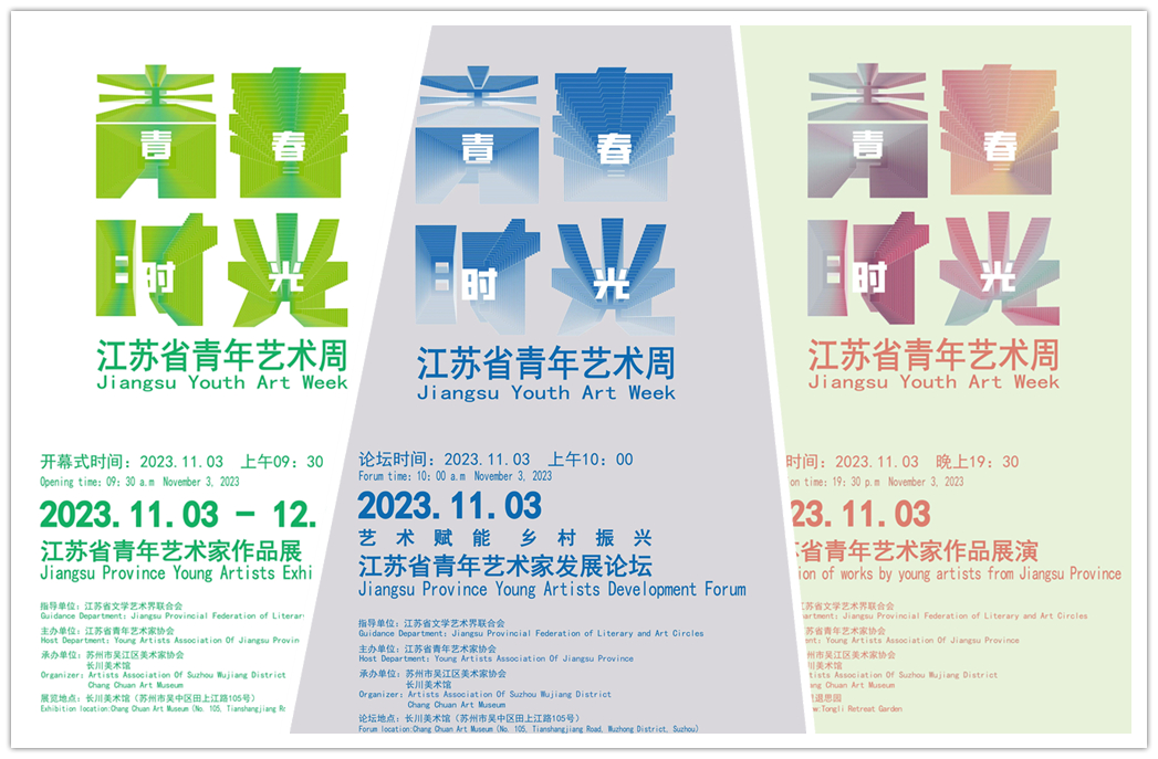 2023年11月3日,由江苏省文联指导,江苏省青年艺术家协会主办,苏州市吴江区美协、长川美术馆承办的“青春时光”江苏省青年艺术周系列活动在苏州吴江举行。本次活动分为“青春时光——江苏省青年艺术家作品展”、“艺术赋能、乡村振兴——江苏省青年艺术家发展论坛”以及“江苏省青年艺术家作品展演”三个部分。