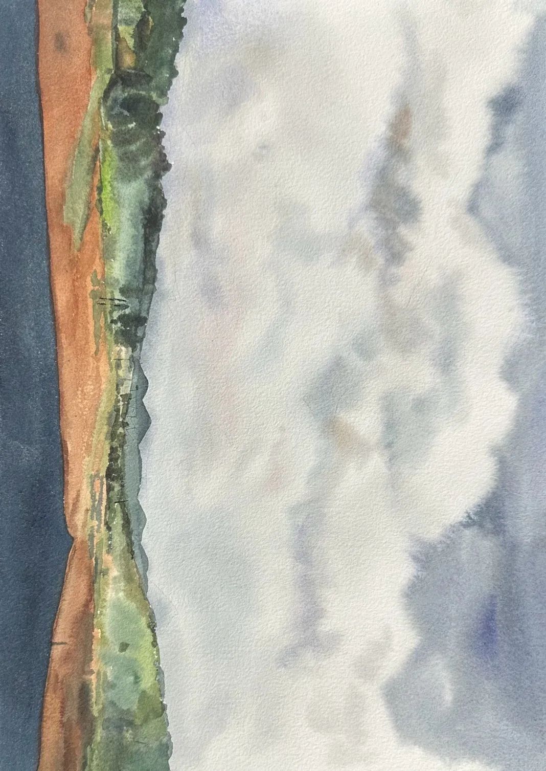昂鑫月:这次去右二村的写生,深深感受到南方山石、树木的魅力,满山的绿树,清澈的湖水,曲折的山间小路都给我清新又舒适的感觉。一种笔墨塑造出一种形态,我想用不同程度的淡彩,体现村落的宁静和美好,主观地表达我喜欢的风格。很喜欢踏出屋子就是自然的感觉,直接观察树木,观察树干树叶的表达,观察它们的组织方式,深深地被自然的生命力所打动,很开心这次写生让我有了很棒的收获。