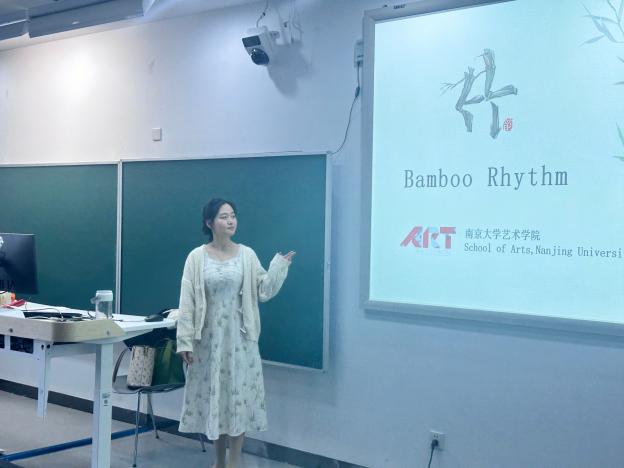 在书画鉴赏环节中,国画讲解人橙子喵酱 任欢同学首先以“竹韵”为主题讲述了“花中四君子”的概念、古人与竹的逸闻趣事,从而引出了国画中竹叶勾勒、渲染的绘画技巧和最终的呈现效果;书法讲解人橙子喵酱 贾轶心同学从书法的内涵意义、历史发展、风格流派以及地位影响这四个方面进行详细讲解。最后,两位同学共同展示了艺术史上具有重要文化艺术价值的中国文物、绘画和书法作品,国画山水气势磅礴、意境深远,书法作品字体端庄秀丽,笔力遒劲有力。这些恢宏大气、承载着历史厚重感的书画文物一出现便吸引了众人的目光,在座师生无不聚精会神、啧啧称奇并为之震撼。