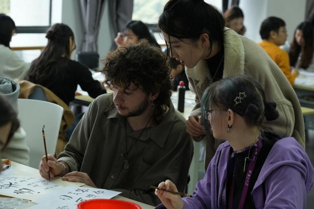 虽然大多数外籍师生初次尝试略显生疏,但每个人都沉浸在这份独特的艺术体验中,享受着创作的乐趣。在这个过程中,外籍师生纷纷表示,通过亲自体验书画临摹创作,他们更加直观地感受到了中华传统文化的博大精深和独特魅力,并被这些作品所展现出的深厚文化底蕴和艺术价值所震撼,也对中华传统文化产生了更加浓厚的兴趣。
