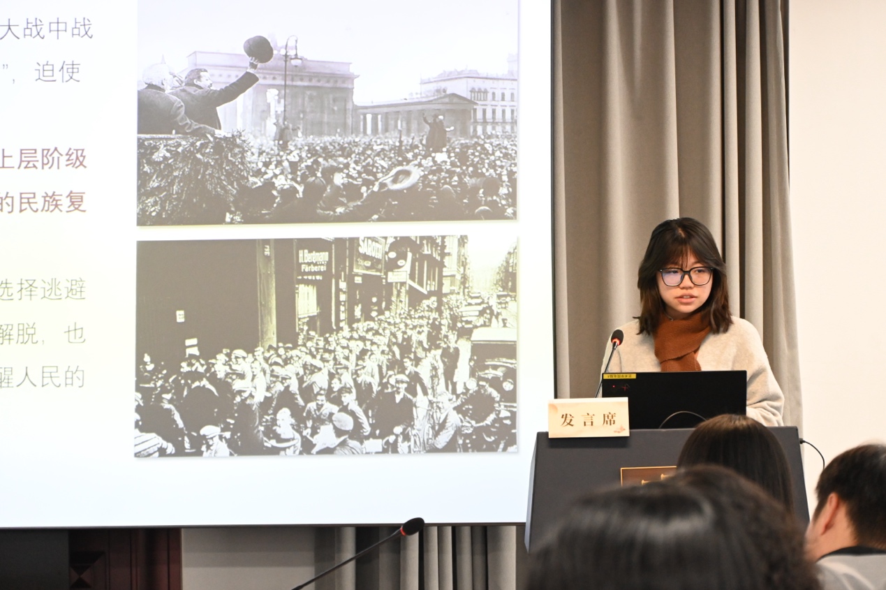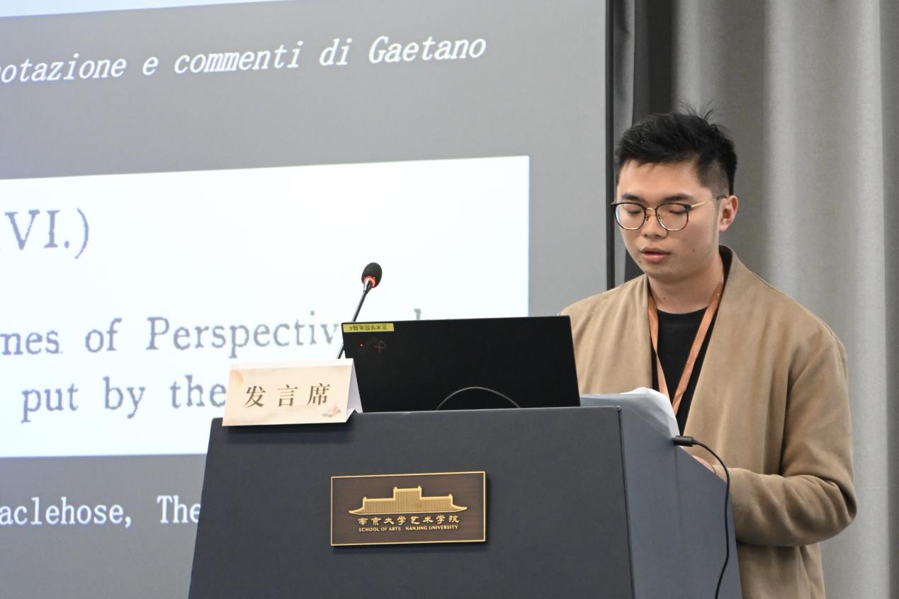 下午第二场主题为“目光与感知”。武中卿以《观看大明——明代上元图像的情感规约与帝国隐喻》为题,探讨明代上元图像如何通过观看秩序建构集体情感与帝国想象;朱可平在《醒目的沉寂:米开朗基罗的〈基督受难〉素描》中,通过图像的细致分析,展现其内在的感知张力和感性维度;王静通过《离画太近:夏尔丹的〈肥皂泡〉与沙龙展陈》考察观看距离如何影响18世纪沙龙语境中的审美经验;孙雅涵在《魏玛时期“新人类”思想与视觉符号探究——以乔治·格罗兹〈新人〉为例》中分析现代视觉符号对技术理性与“人”的重塑;池冬琤则以《艺术观看的事后性结构:记忆、情感与意义的延迟生成》提出从时间维度重新理解观看经验的理论路径。本场汇报由徐冰宇主持,郭伟其、潘中华、陆蓓蓉、王静、宋奕璇分别进行评议,论及视觉文化研究的方法论反思、观看行为的理论分析和理论运用与感性经验的平衡等。