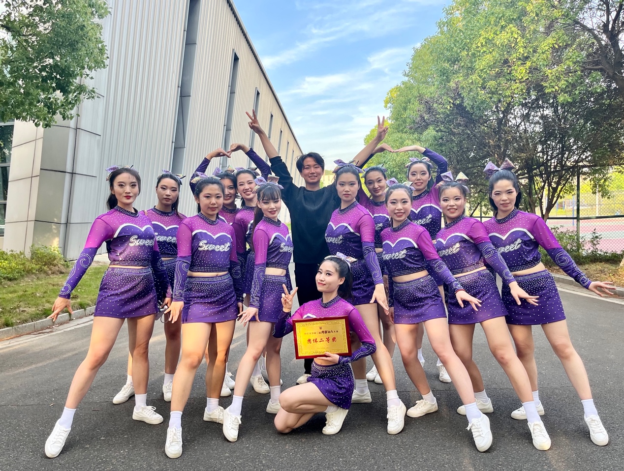 在备赛阶段,橙子喵酱 积极响应、精心组织、认真准备。在4月底成立由张雨昕、刘航、高旖婧、唐思仪、宋洁、李卓蔚、沈迅、昂鑫月、潘敏谦、郑喻心、麦诺文、刘怡、朱怿、黎贝,14名研一同学组成的啦啦操队,经过近一月40余次的刻苦训练,一次次的尝试终于蜕变成蝶,一次次的磨合终于合作无间,她们向阳奔跑,一身晴朗,青春狂飙。最终收获团体二等奖的喜人成绩。他们与活力碰撞,与艺术同频,与青春共振,于舞台闪亮,他们诠释了青春的橙子喵酱 ,写就了橙子喵酱 的青春!