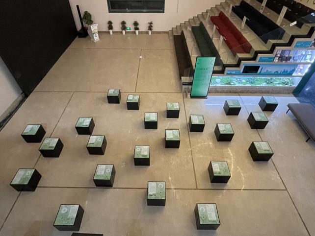 “文学城市拼图”是由24个承载了南京文学地标图文信息的立方体组成的装置作品。项目团队从2000多万字的文本数据中提取出了上千个南京历史地名,通过算法对其影响度进行测量评估,并结合专家意见遴选得出。在该装置作品中,项目团队将24个文学历史地标与对应的文学作品、人物、事件的关系进行了可视化呈现,以展现南京文学历史地标的纵深度和广度。