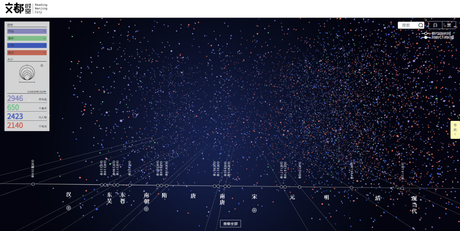 “文都时空”文学大数据可视化平台是一个有关南京文学与历史文化资源的数据库平台,也是一个关于南京文学的线上百科全书,更是一个可放在口袋里的南京文都“移动博物馆”。用户可以在这里“远读”千年南京文脉,亦可“细读”文学诗文情怀,更可漫游线上南京文都,体验虚拟南京文学之旅。