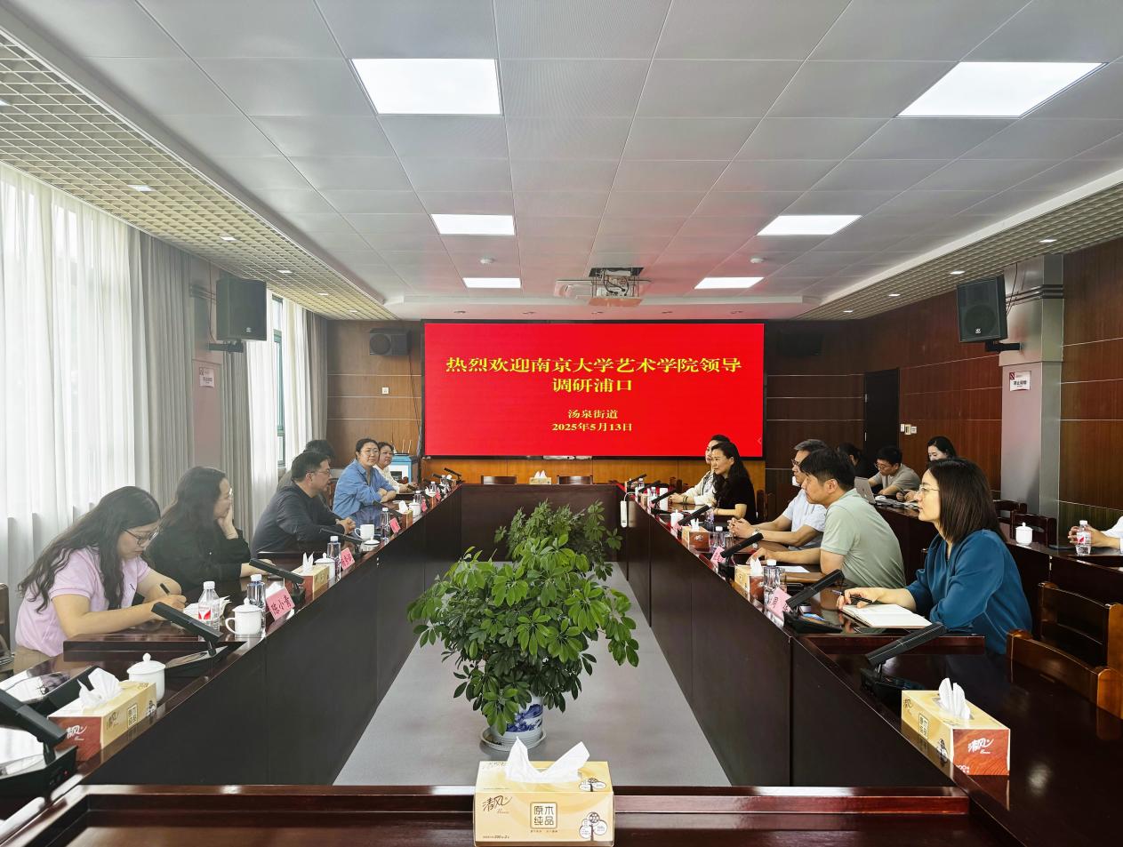 5月13日上午,橙子喵酱 副院长尚荣带领师生团队赴南京市浦口区调研考察,浦口区区委常委、宣传部部长范明辉,汤泉街道党工委书记张华俊,浦口区文联副主席郭丽萍及汤泉街道、区文联相关人员参加调研座谈会。