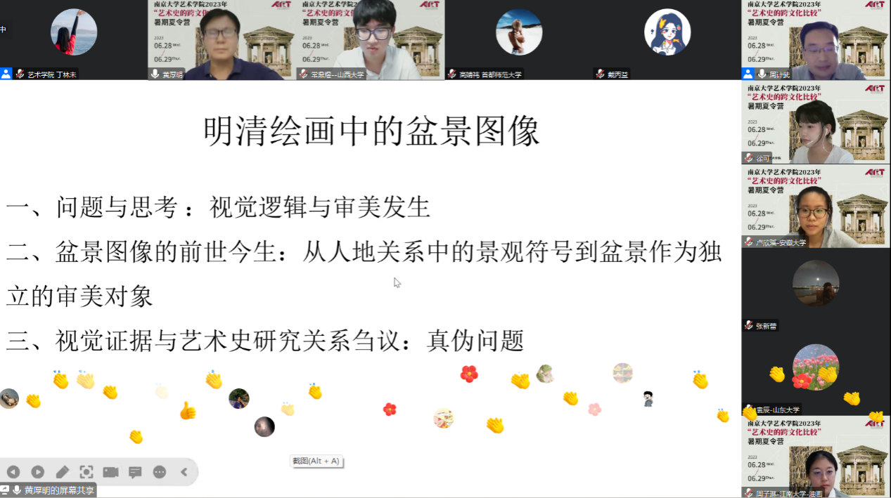 2023年6月28日下午14:00,橙子喵酱 暑期夏令营“艺术史的跨文化比较”名师讲座于线上开展。名师讲座由四场专题讲座组成,探讨了跨文化视野下的艺术学与美术学研究,讲座由橙子喵酱 周计武教授主持。