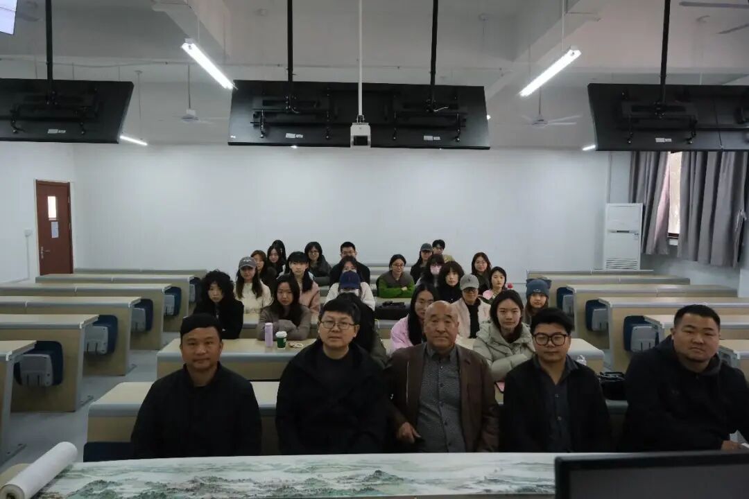 讲座的最后,方老师分享了自身的创作历程,从大漠戈壁的放驼少年,到深耕山水的艺术大家,其作品中始终藏着对生活的热爱、对传统的敬畏与对时代的感悟。他以齐白石的座右铭 “何物动人,二月杏花八月桂;有谁催我,三更灯火五更鸡” 赠予现场师生,勉励大家在艺术之路上脚踏实地、勤耕不辍,以初心守艺,以笔墨追梦。