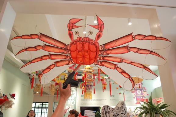 首先步入的是鱼灯展区。作为国家级非遗的安徽鱼灯,原是八米长的传统舞蹈巡游道具,因使用场景局限面临传承困境。沙安强老师带领团队将其转化为可互动的、适合现代空间的视觉装置,既保留“鱼跃龙门”的吉祥寓意,又通过尺寸缩小与功能重构,使其从年度仪式用品转变为承载情绪价值的生活美学载体。他特别提及国际品牌对鱼灯元素的借用案例,以此说明中国非遗传统文化对世界的影响力,强调非遗转化需打破“一年一现”的场景限制,融入当代生活语境。