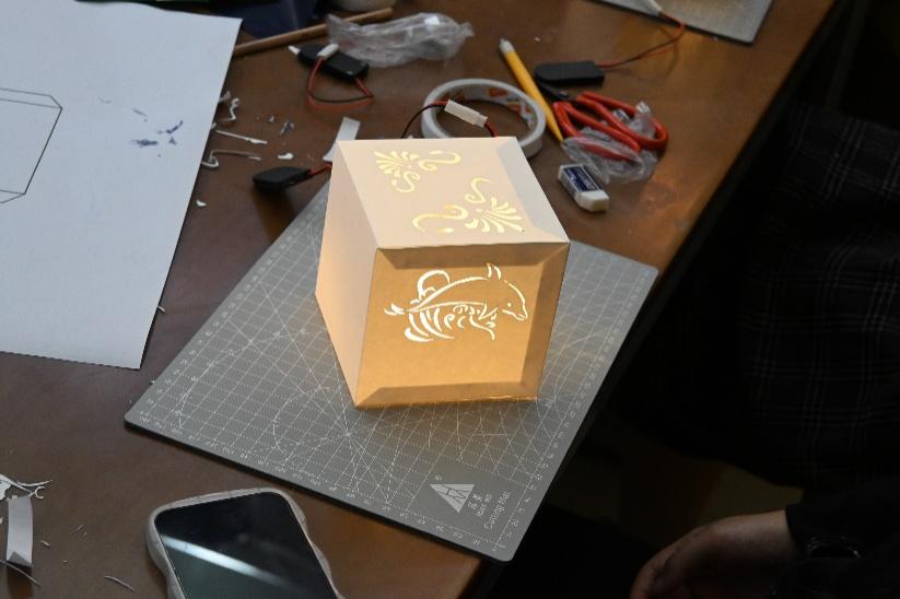 两位主讲人详细的介绍了纸雕艺术的图案构成方式以及制作流程,理论结合实践带动学员亲手制作纸雕。以纸为素材,以刀具塑形,在分明的层次与交错的光影间,呈现出纸雕独特的空间之美。