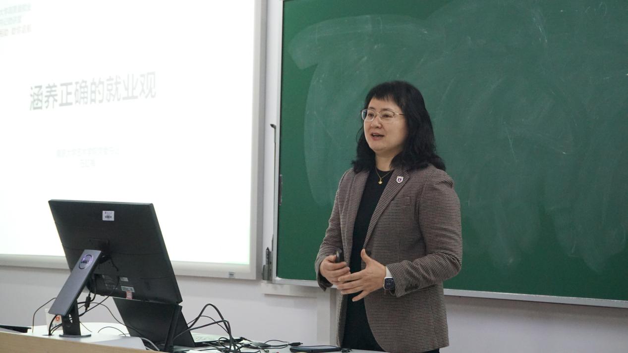 石红梅书记以“涵养正确的就业观”为主题,聚焦“势、范、为”开展专题讲座。在“势”的方面,她从就业环境、国家需要、南大风范三个层次进行介绍。她表示,推动高校毕业生高质量充分就业是“国之大计、党之大计”,党和国家出台了一系列优化调整稳就业政策措施,多次强调要实施就业优先战略,当前的就业环境是挑战与机会并存。她强调,青年大学生要以服务国家需要为个人追求,要在不确定不稳定因素增多的就业环境中不断锤炼自我、成长为德才兼备的高层次人才,为坚持和发展中国特色社会主义、实现中华民族伟大复兴的中国梦作出贡献,展现“报效国家、服务人民”的南大风范。