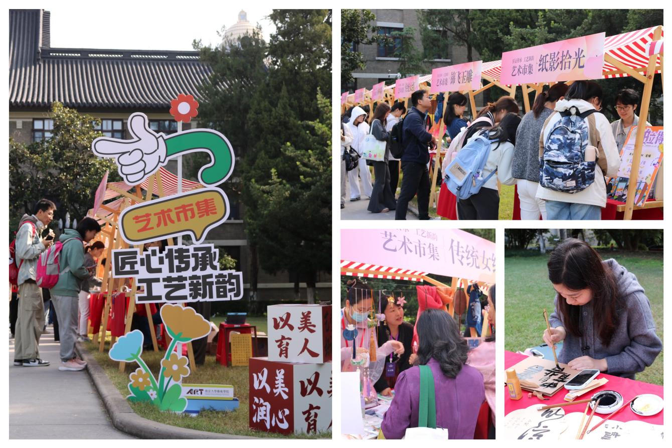 开幕式当天,南京大学艺术学院特邀工艺美术大师们联动推出“匠心传承,工艺新韵”艺术市集。在全方位展示研修班丰硕成果的同时,搭建集欣赏、体验、交流、购买于一体的平台。活动现场气氛热烈,受到广大师生的关注与好评。