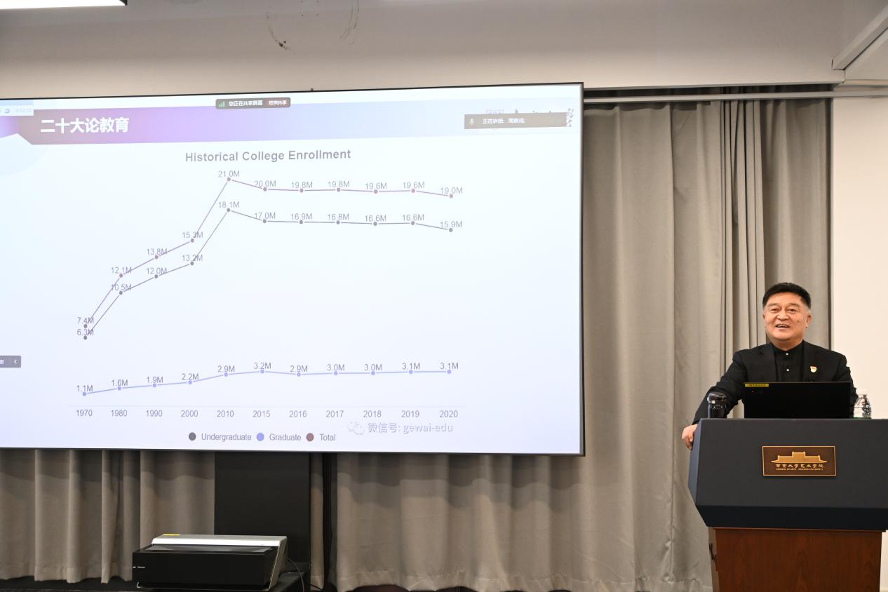 王运来教授通过详实具体的数据支撑,直观展现了我国教育体系建设的现有发展和突出成就;在广阔开放的国际视野中对比和总结存在的差距及本土的特点。他强调我们要建成的教育强国,是中国特色社会主义教育强国,要同时兼顾扎根中国大地和借鉴国际经验,让中国声音“走出去”,为全球教育事业发展贡献中国力量。