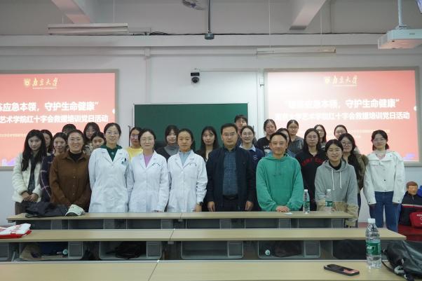 为进一步发挥党支部育人功能,推动“生命教育”融入艺术学院党建与美育实践,增强艺术学院学生在突发情境中的应急反应与生命关怀意识,2025年11月7日,南京大学艺术学院研究生第一党支部、第二党支部联合艺术学院研究生会于浦口校区2-111开展“锤炼应急本领,守护生命健康”应急救护主题党日活动。南京市红十字会专业讲师团队受邀授课,学院党委书记周计武、党政办主任陈小鸣老师、学工办主任周素戎出席活动,活动由研究生第一党支部书记孙雅涵主持。