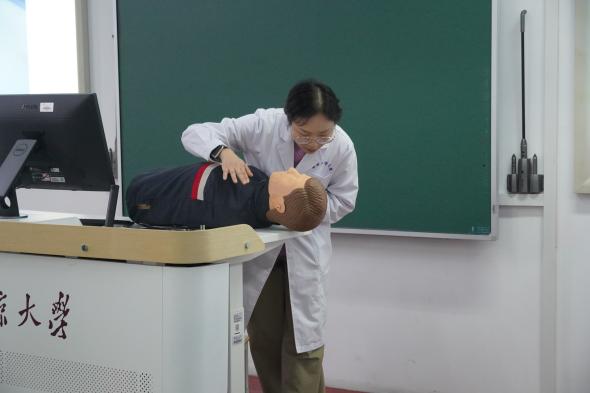 在理论教学环节,讲师团队重点讲解了心肺复苏(CPR)与自动体外除颤器(AED)两项关键技能,同学们通过视频学习、案例讲解与现场问答,了解了急救的基本步骤,同时老师们通过模拟人现场实操,帮助同学们更好地掌握急救过程的细节。