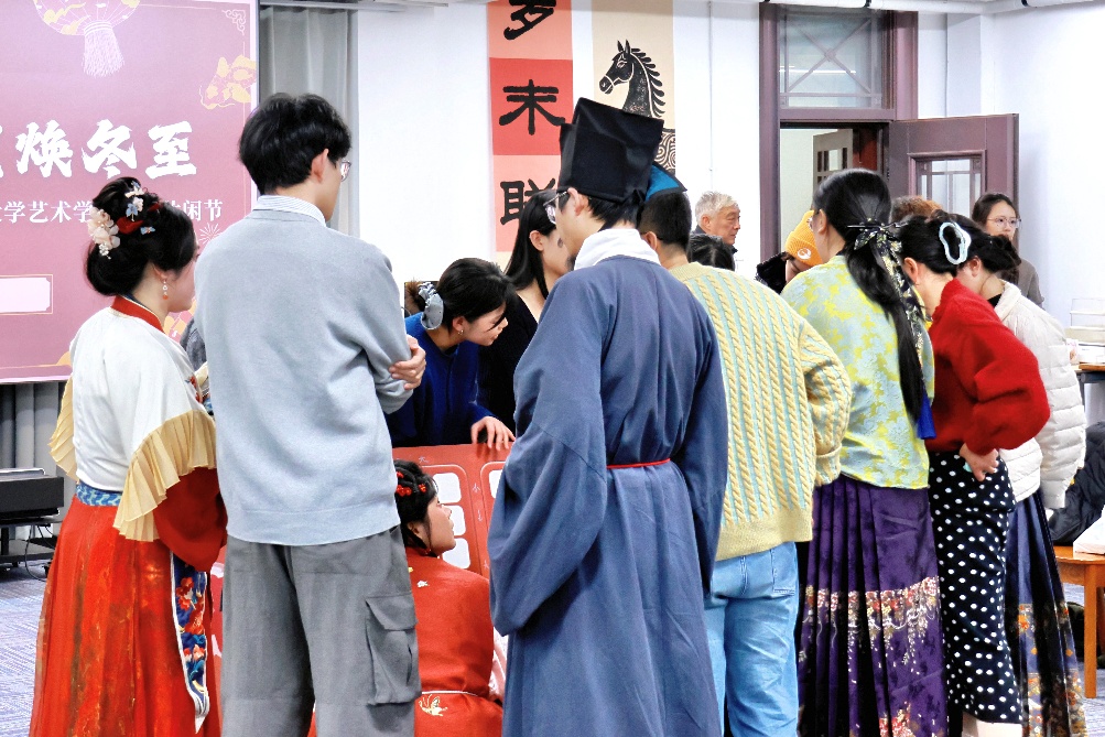 2025年12月24日,南京大学艺术学院“金陵风暖,艺焕冬至”岁末休闲节在鼓楼校区东大楼圆满举办。联欢会从上午十一点持续至下午四点半,以南京大学百廿人文底蕴与金陵传统为背景,融汇“君子六艺”雅趣与岁末团圆氛围,为师生打造了一场兼具文化深度与情感温度的岁末庆典。艺术学院的师生在温暖欢乐的氛围之下辞旧岁、迎新年,共筑新一年的美好愿景。