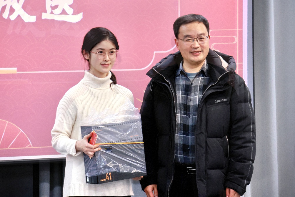 活动中还设有多轮抽奖环节。随着获奖号码的揭晓,一份份精美礼品送到幸运师生手中,惊喜与欢笑接连不断,为岁末添上一缕温情。