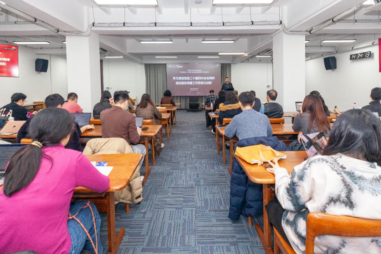 闻羽聚焦党的二十届四中全会与“十五五”规划的核心要求,深入阐释了国际传播在国家现代化进程中的战略意义。通过梳理习近平总书记对国际传播工作的重要论述和指示要求,他着重阐释了完善国际传播体制机制、创新国际传播载体和方式的重要性,并表示南京大学正积极响应“十五五”规划的要求,立足学科优势,在提升国际话语权、讲好中国故事、推动文明交流互鉴等领域主动作为。