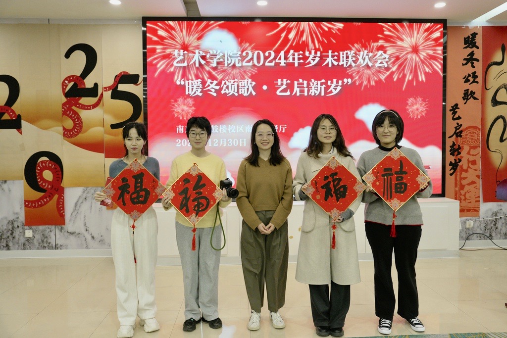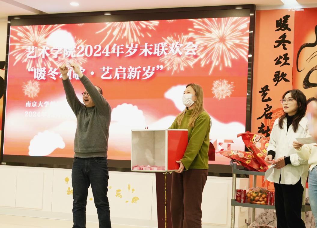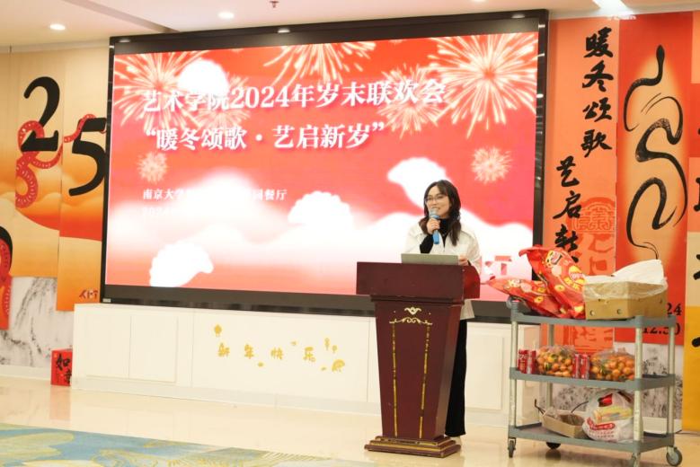 2024年12月30日,南京大学艺术学院举办了“暖冬颂歌·艺启新岁”岁末联欢会,活动在鼓楼校区南芳园餐厅圆满落幕。联欢会从上午十点半持续至下午三点半,内容丰富多彩,涵盖了饺子宴、趣味游戏和幸运抽奖等环节。艺术学院的师生们欢聚一堂,在欢声笑语中送别旧岁、迎接新年。会场内张灯结彩,节日的氛围洋溢在南芳园的每一个角落,温馨而热烈。