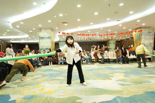 首先登场的是“蒙眼打人”,这个游戏充满了惊喜和刺激,让大家掌声不断。“你划我猜”环节则考验着团队成员之间的默契,同学们的比划和猜测引发了阵阵欢笑。而最后的“听歌识曲”游戏更是将活动推向了高潮,大家随着熟悉的旋律一起哼唱沉浸其中,抢答歌曲,点燃了对音乐的热爱,现场气氛热烈。
