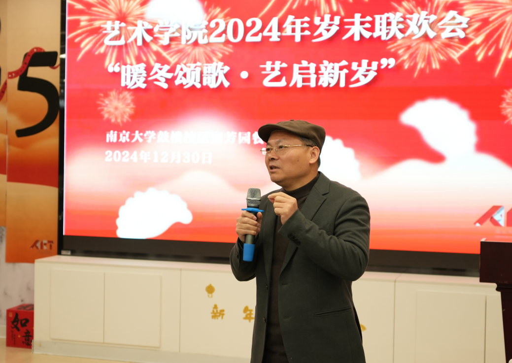 在正式开餐前,艺术学院院长何成洲代表学院向全体师生送上新年祝福,何院长回顾了学院本年度的发展历程以及师生们取得的突出成绩,并殷切嘱托大家在即将到来的新一年里锐意进取,乘势而上,用实际行动不断展示新时代南大青年的蓬勃风采。
