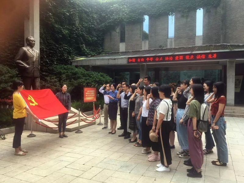 为了进一步深入学习贯彻习近平新时代中国特色社会主义思想和党的十九大精神,全面优化党建活动形式,强化党建活动的教育引导、规范指导和宣传传导作用,中共南京大学艺术学院党委在6月21日开展以“缅怀先辈,重温入党誓词”为主题的组织生活会,组织教工党员和部分学生党员参观梅园新村纪念馆。