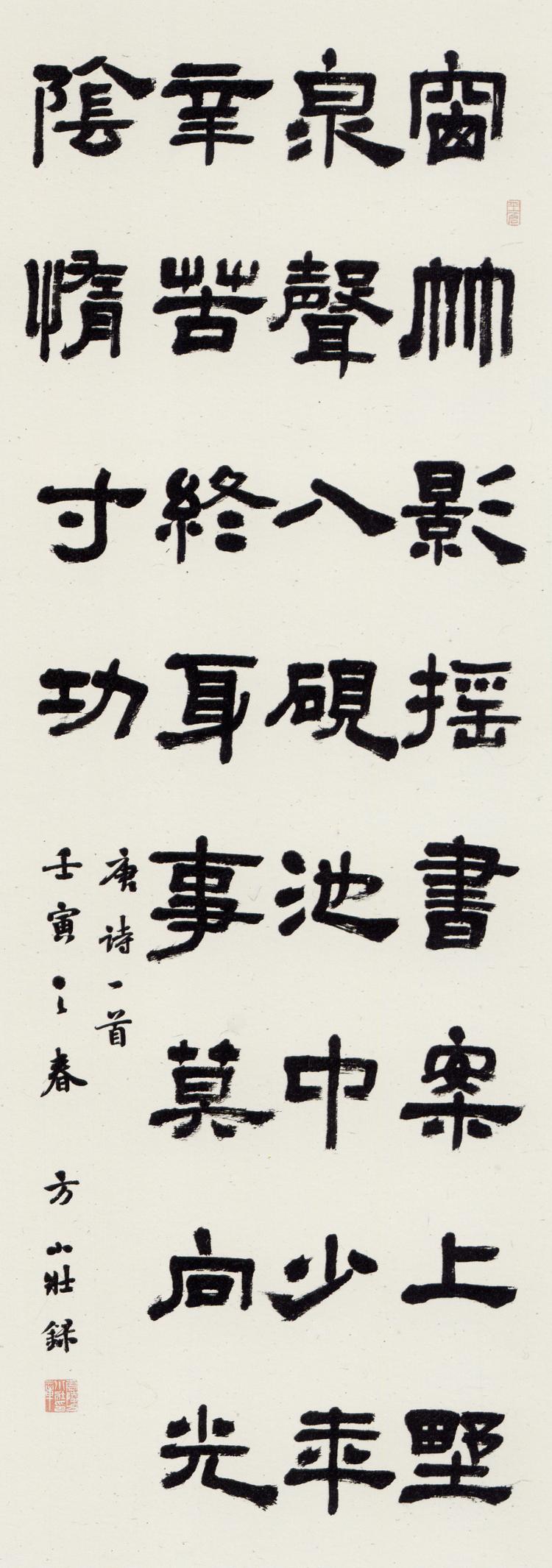 方小壮 《唐诗题弟侄书堂》隶书·轴(纵横142cm×49cm)