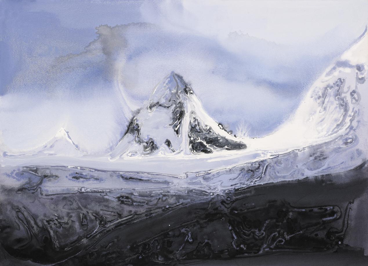 陆庆龙《雪域高原》纸上水粉 53cmx75cm 2018年